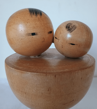 Questa sorprendente kokeshi cattura sottilmente la tenerezza e l’amore materno, trasmettendo un senso di semplicità e purezza. La maestria di Aida san in questo bellissimo kokeshi “Madre e Figlio” ha dato vita ad una eleganza senza tempo plasmando il legno nudo, ove il colore è presente solo nei piccoli tratti di pennello che danno forma ai lineamenti dei due volti.